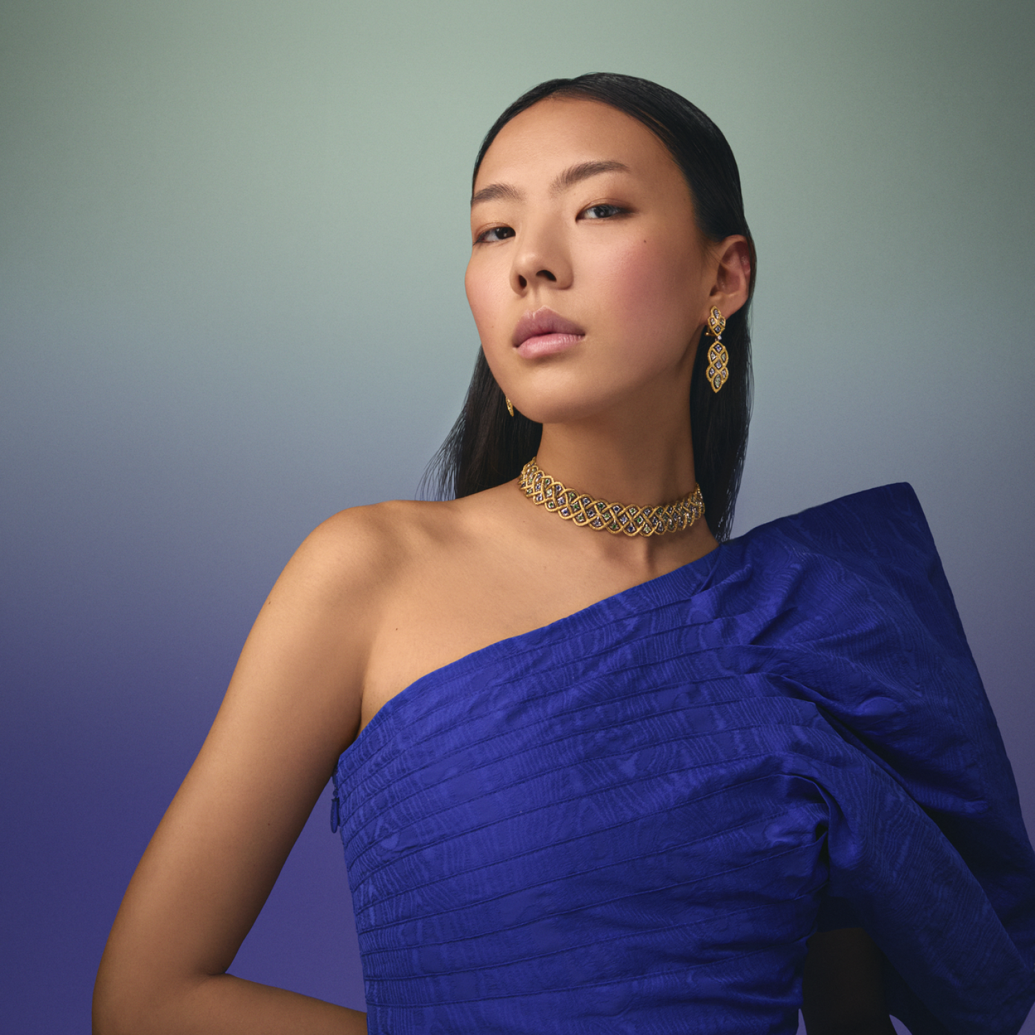 Étoilée Color系列重新诠释品牌第三代传承人Andrea Buccellati先生标志性的手工雕刻工艺,以彩色宝石取代传统钻石镶嵌。红宝石和锰铝榴石的炽热光芒邂逅蓝宝石和沙弗莱石的宁静清爽,冷暖色调交织共舞,演绎光影流转间的静谧平衡。