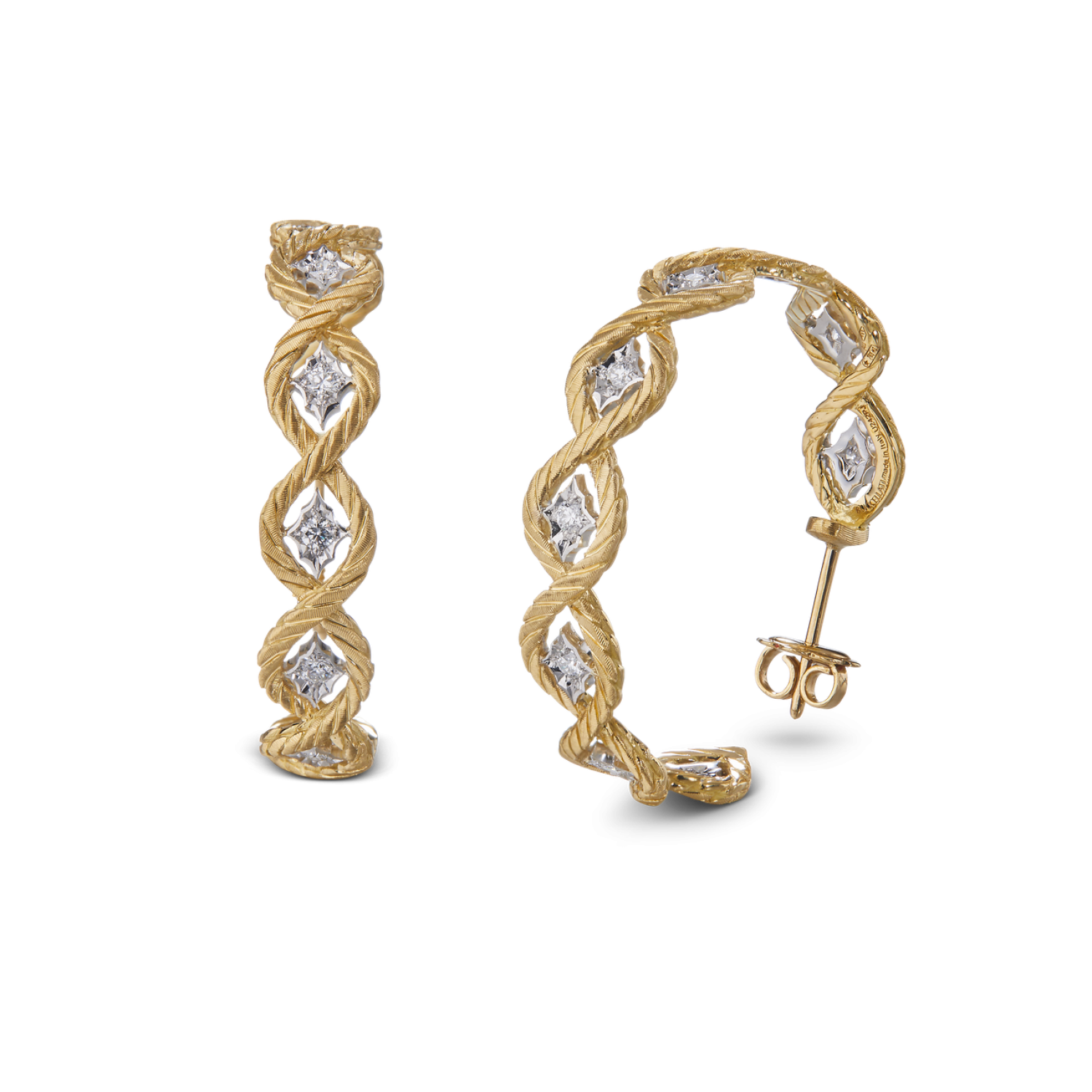 黄白金镶钻耳圈. 宽度:0.7 厘米。