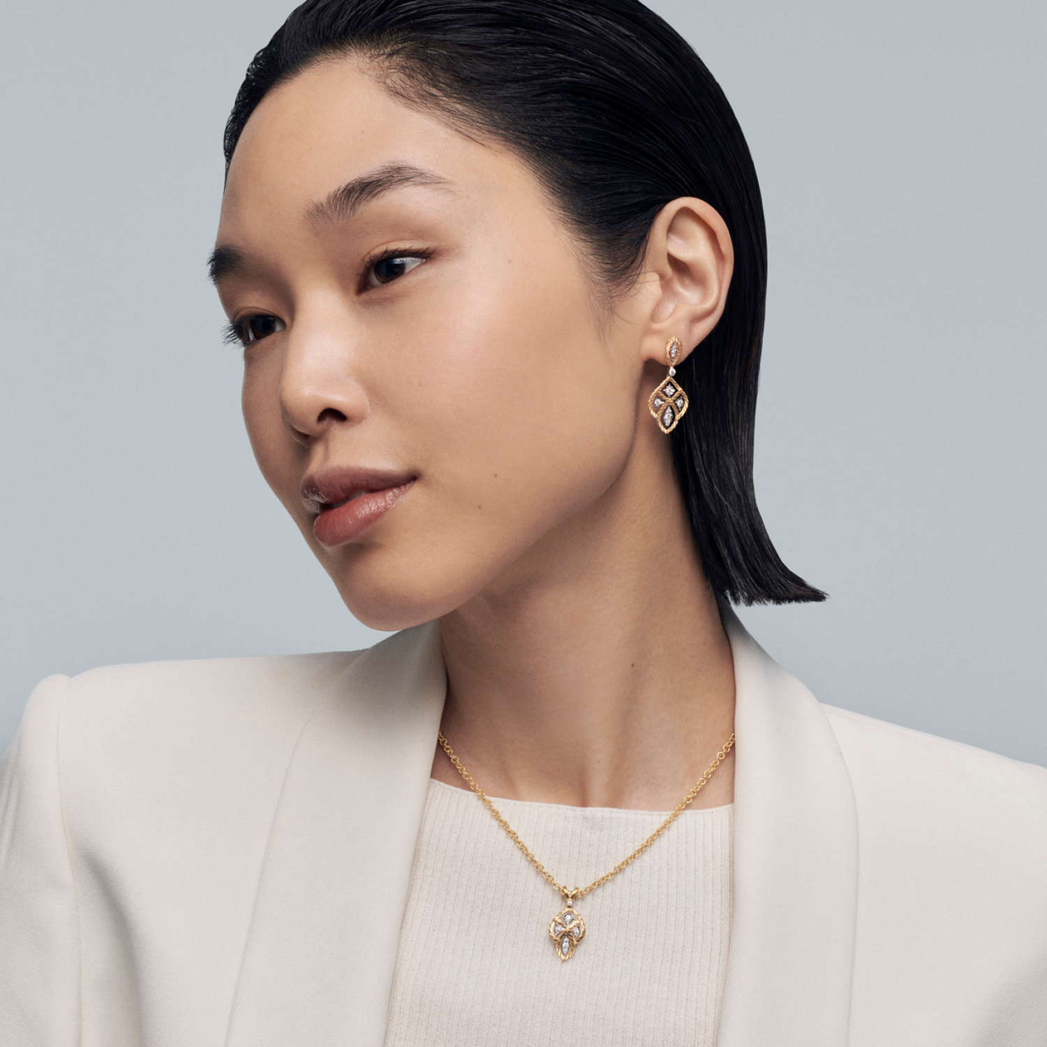 Buccellati布契拉提Étoilée系列孕育自Andrea Buccellati先生的创作巧思,每一处刻面皆经悉心雕琢,尽显精湛工艺。从镶钻百合,绚丽宝石,到白K金镶饰,每件作品均蕴藏着品牌对美与细节的不懈追求。在此步入对品牌永恒至美的探索之旅。
