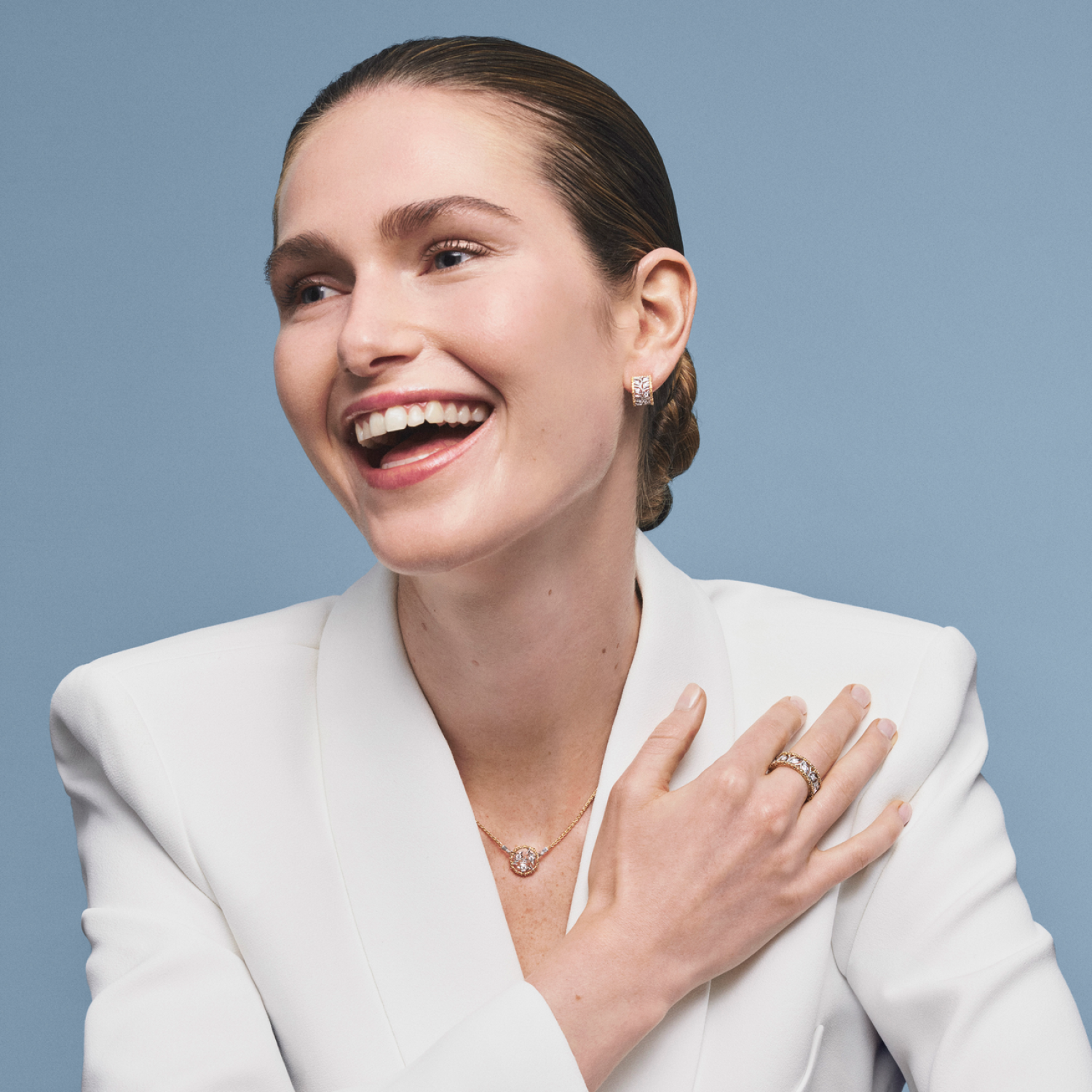 Ramage系列的设计灵感源自于文艺复兴时期,是布契拉提成功的经典图案,早在20世纪20年代便风靡于世。时至今日,金匠依然手工雕琢1毫米的金片,精雕的侧壁上可以看到细小枝叶和盛开的钻石花朵 。