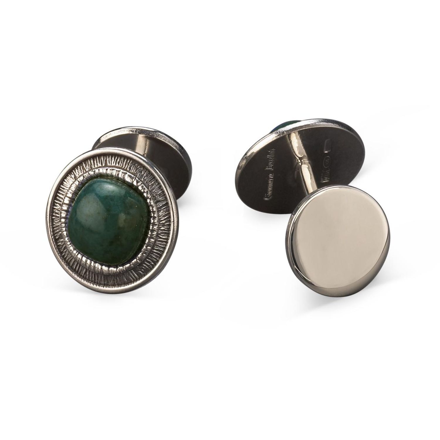 镶嵌其他硬石的银袖扣. 大号绿玛瑙款Rouche。